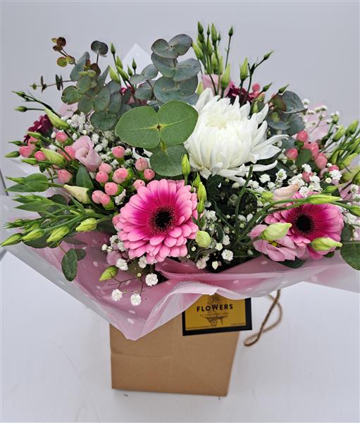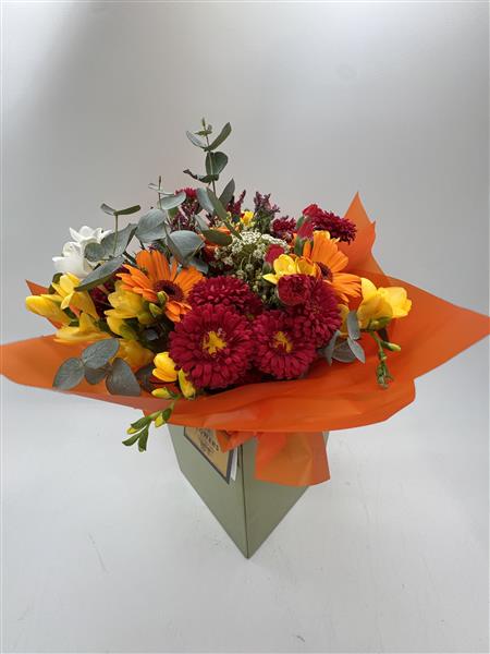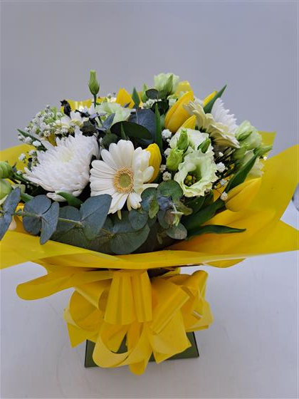 Each bouquet will be representative of the season and contains seasonal flowers presented hand tied in water.